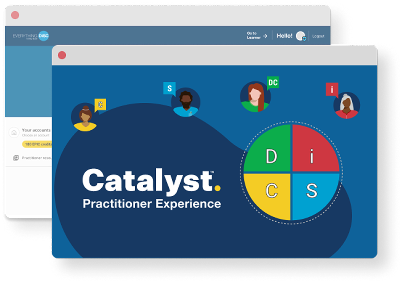 The Catalyst™ Practitioner Experience equips you with everything you need to deliver engaging DiSC® training sessions that help people work better together—all in an easy-to-use solution.
